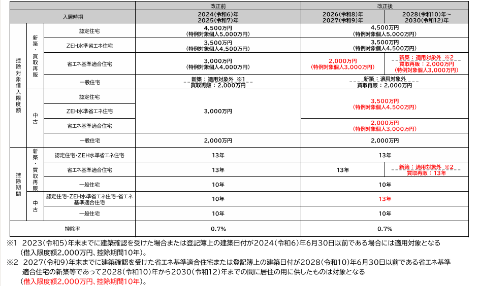 ① 適用期限を5年間延長(令和8年1月1日~令和12年12月31日に入居した場合、適用可能)