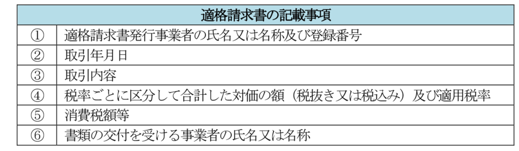 適格請求書として必要な記載事項は下記のとおりとなりますが、この記載事項は一の書類だけで全てが記載されている必要はありません。